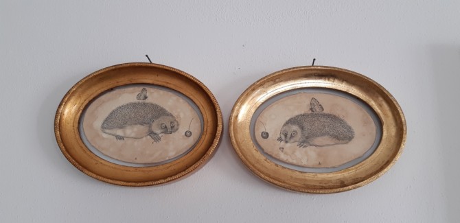 2 Ricci e farfalle china su carta anticata 18x14 anno 2020