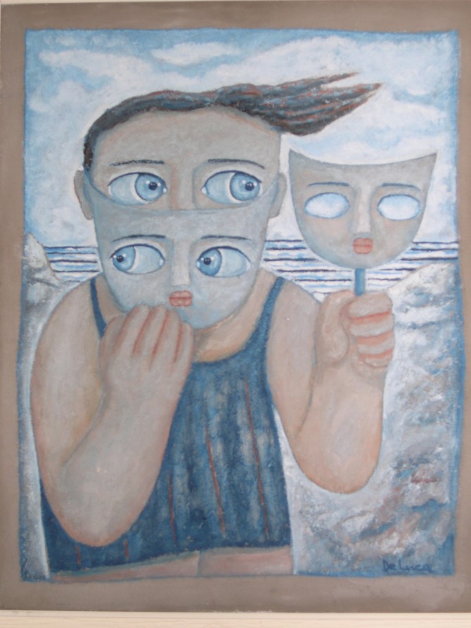 Le maschere, cemento dipinto ad olio, cm 55x40, anno 2004