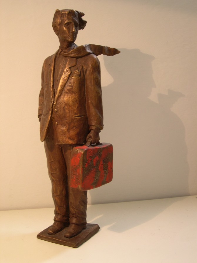 L'uomo con la valigia rossa, 2005 bronzo, III/XX, H cm 35