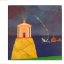Nello studio, (lettera P) acrilico su tarsia, cm 20x30, anno 2004