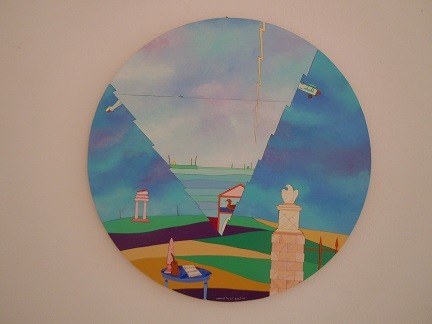 Paesaggio rotto. acrilico su tarsia, D= cm 50, 1998